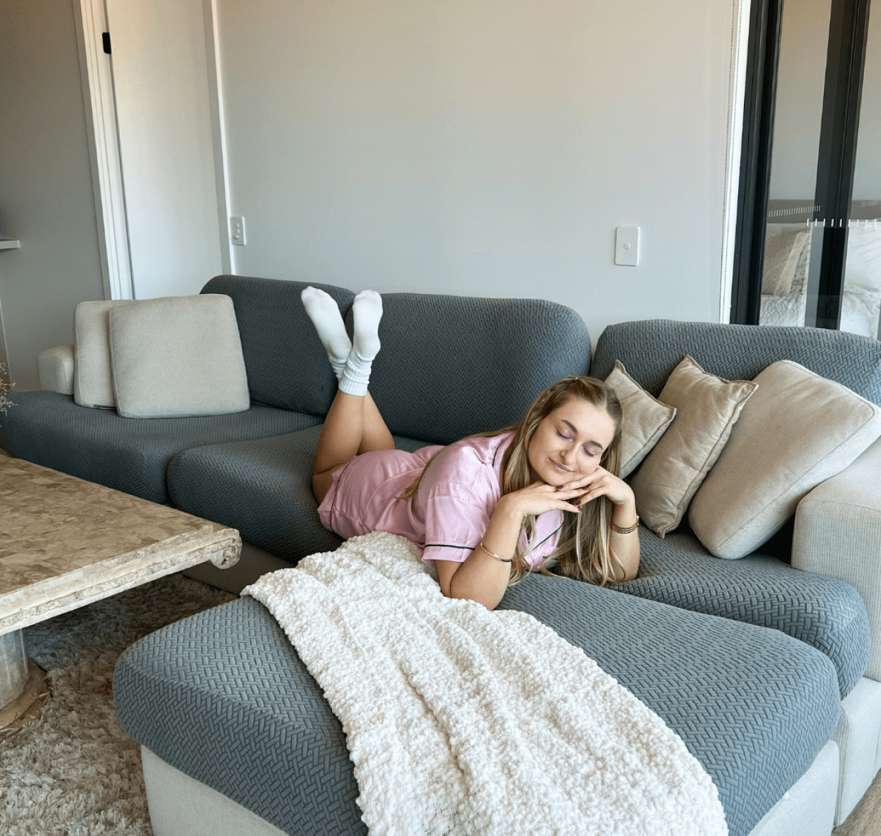 Made of soft stretch jacquard fabric, 85% polyester and 15% spandex material, our COUCHCOATSβ’ are high stretch, soft, wrinkle resistant, durable and long lasting. Designed strictly for couches with removable cushions.
