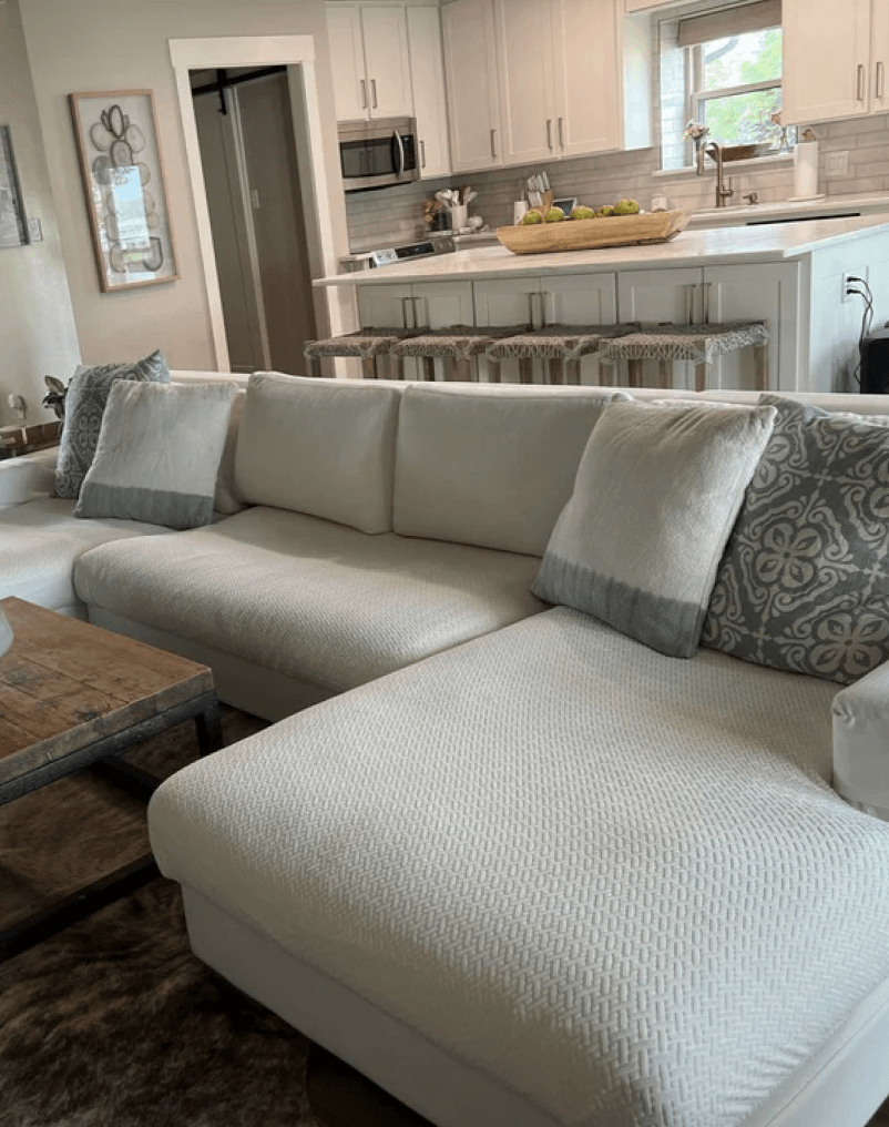 Made of soft stretch jacquard fabric, 85% polyester and 15% spandex material, our COUCHCOATS™ are high stretch, soft, wrinkle resistant, durable and long lasting. Designed strictly for couches with removable cushions.